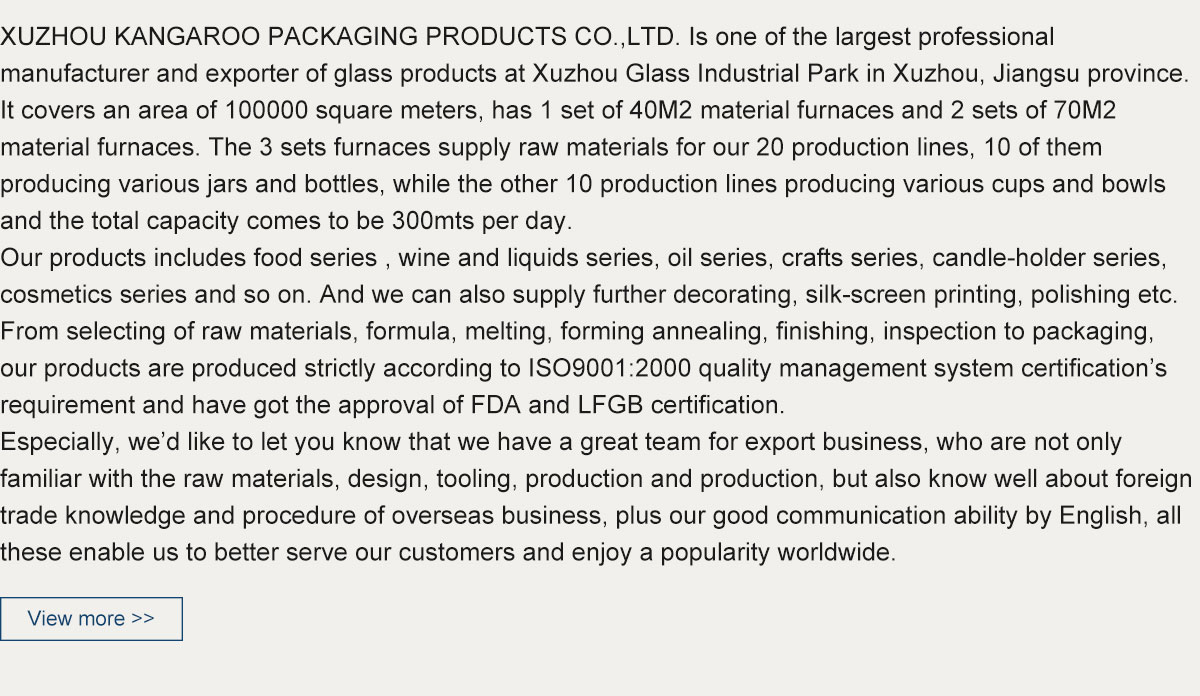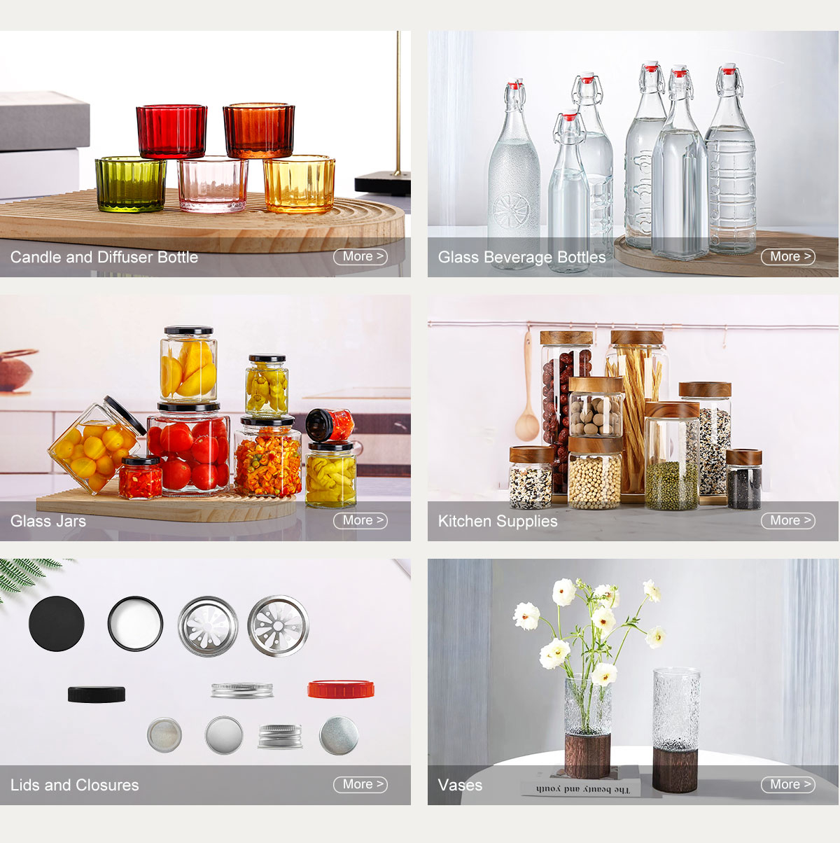Productos principales:Frascos de vidrio, Botellas de vidrio, Regalos y regalos, Suministros de cocina, Tapas y cierres